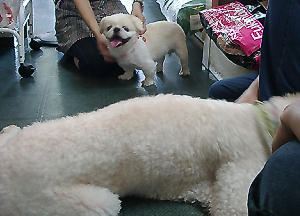 『デカ〜〜〜』 と、きっと思っているであろうペキ。 そして側で横たわるブー子さん。 |
